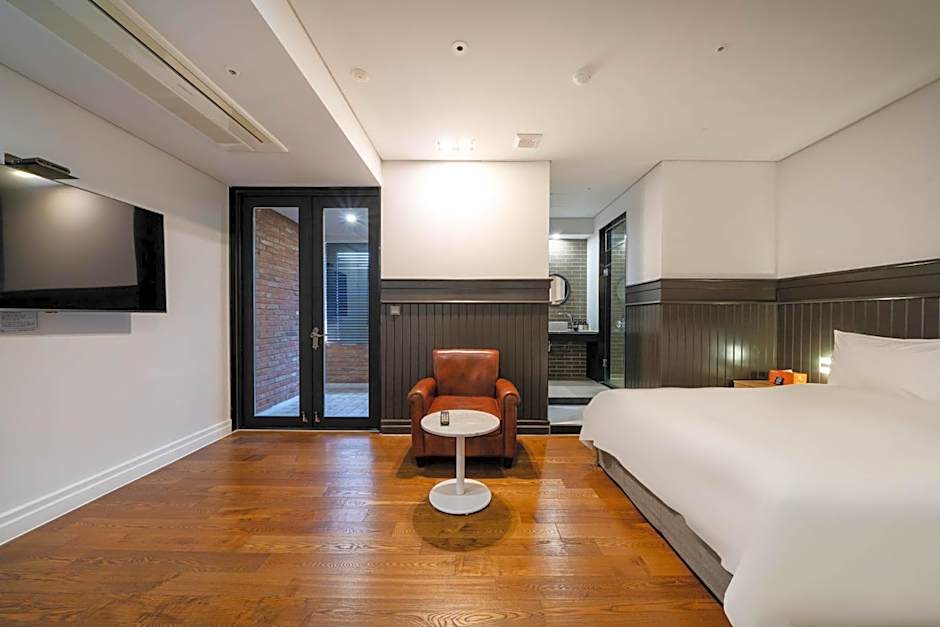Featuring cream-colored walls and wooden furnishing, this elegant double room comes with a seating area with a coffee table and a wall-mounted TV. Private bathroom includes a bath and a shower. Free one coffee tiket , Adenblanc Jerry Cafe Haeundae Branch (regular progress)